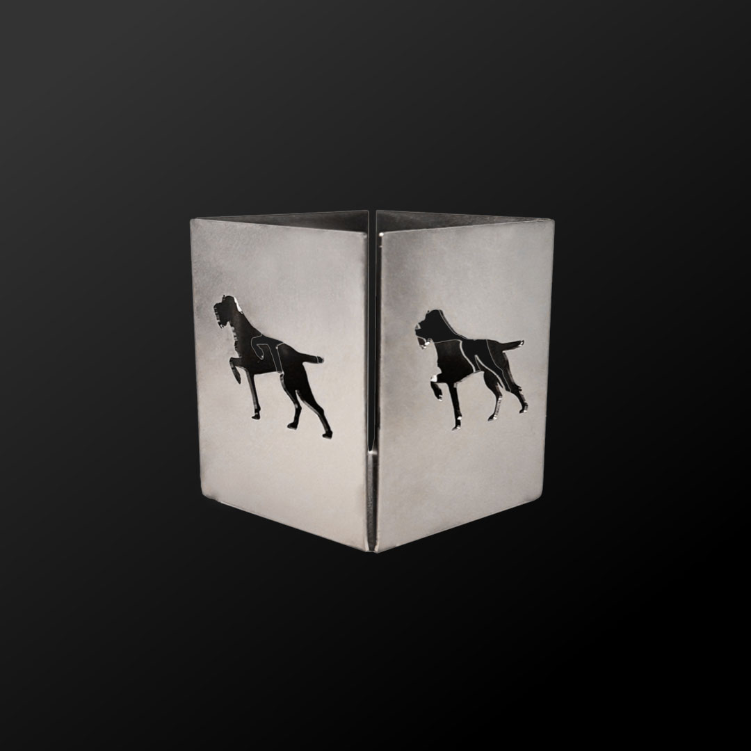 Wirkungsvoll gestaltetes Teelichthalter mit Deutsch Drahthaar Motiv aus Edelstahl – in Premiumqualität.